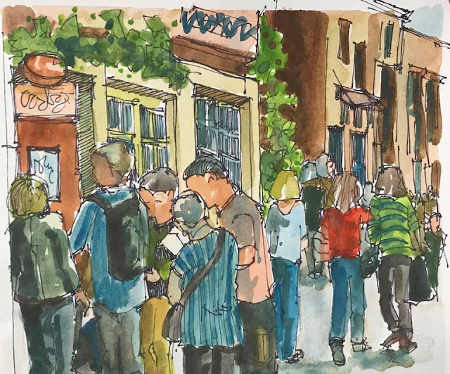 "Sanctuary" is a view of Houghton's Pond in Milton, MA. I painted it as a commission and a surprise, for the daughter of a friend (also a friend). Her partner (who I had not met) reached out to me to ask if I would paint this spot which is special to the two of them. He wanted to surprise her on their first anniversary. Of course I agreed; what a romantic gift! He sent me a few photos, and some guidance such as "the rock is very important".